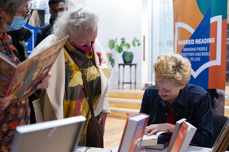 - Maxine Peake signing books in the welcome hall