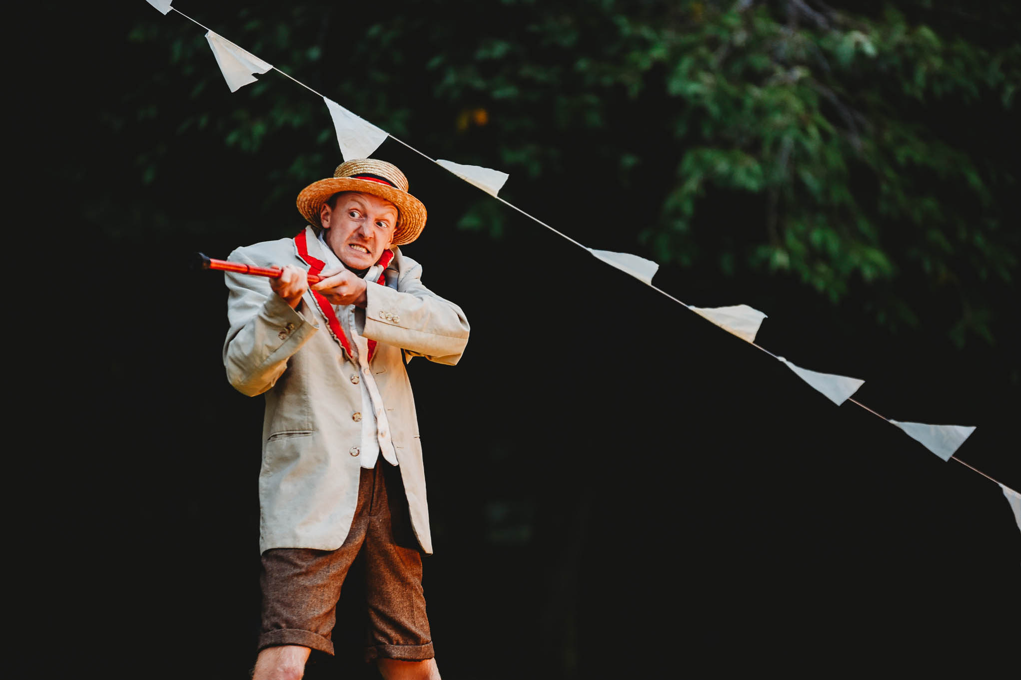 Thankfully, the weather came on side and apart from a pre-interval shower, and some atmospheric gusts of wind whipping up the trees, we were treated to an unforgettable performance of Much Ado About Nothing that had young and old in fits of laughter.
